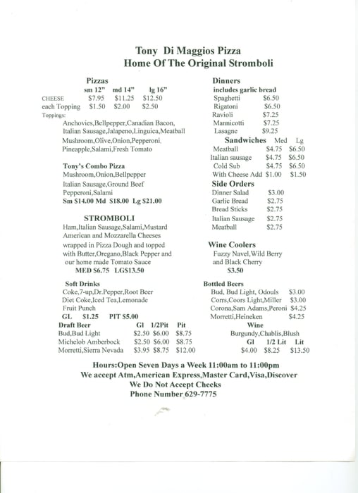 Tony Di Maggio’s Pizza, located in San Jose, CA, is a beloved spot offering delivery, takeout, and reservations. With a variety of vegetarian options and the acceptance of various payment methods, including cryptocurrency, this casual restaurant is perfect for all occasions. The menu boasts classic Southern Italian sauces, delicious strombolis, flavorful spaghetti, and mouthwatering pizzas. Customers rave about the quality of the food, with one highlighting the strombolis as the best they've ever had. Whether you're ordering takeout or dining in, you can expect well-seasoned, fresh, and delicious dishes that will leave you craving more. Don't miss out on the must-try spaghetti and meatballs or the unique pineapple, mushroom, and chicken pizza. Tony Di Maggio’s Pizza is a hidden gem that will surely satisfy your cravings.